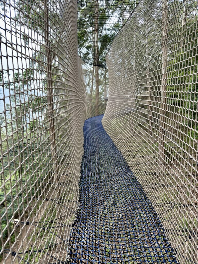 In spite of all of this I paid $7 for the Skywalk, which turned out to be a series of rope netting platforms suspended across a section of the hillside. It bounced quite a bit. The views from it were good: Ella Gap in one direction, the patchwork of tea hills in the other. Worth the $7, if you do not mind the bounciness and the feeling that you are essentially paying to stand on a large trampoline attached to a mountainside.