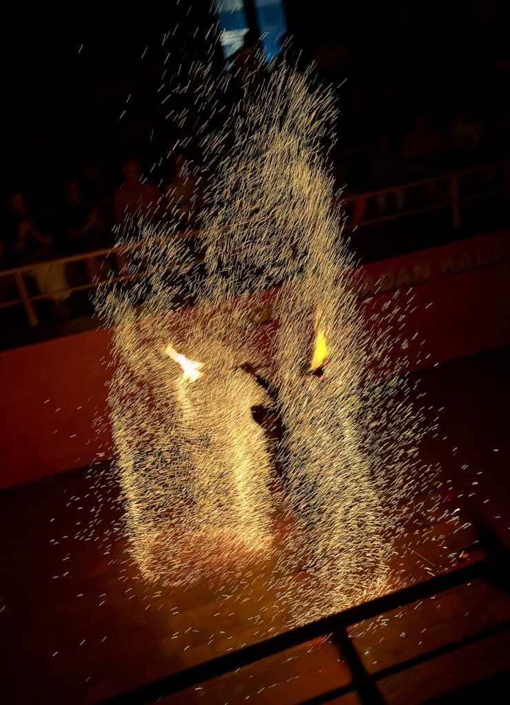 Everything is choreographed for the audience, but unlike stage combat in a Western context, the technique here is the performance. There is no pretending. The performers are simply doing it in front of you, which makes watching feel more like attending a demonstration than a show.