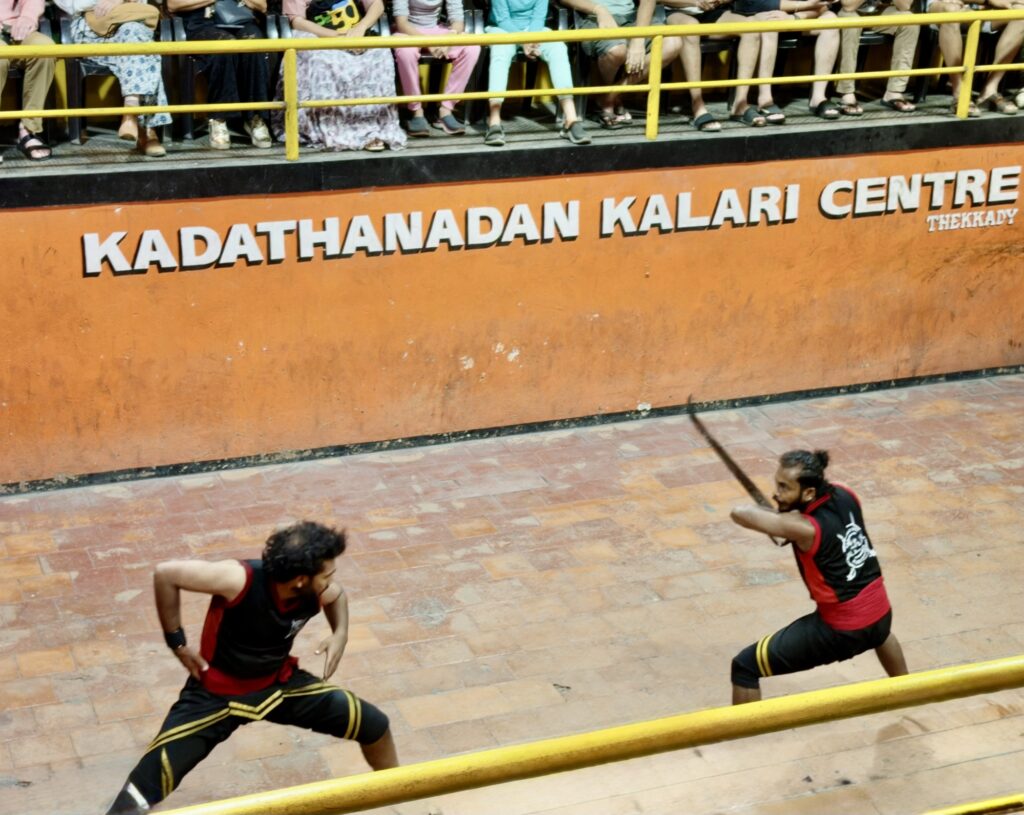 The Kalaripayattu show was at 6 PM at the Kadathanadan Kalari Centre. Kalaripayattu is a martial art that originated in Kerala and may be the oldest codified fighting system in the world. The claim is disputed, as these claims tend to be, but the form itself is ancient and the technique is not in doubt.